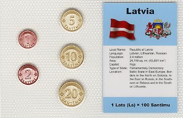 Currency: 1 lats = 100 santimu